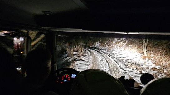 Die FF Bad Hall rückte mit dem Tanklöschfahrzeug aus und wurde vor Ort in den groß angelegten Pendelverkehr zur Löschwasserversorgung eingebunden. Bevor die Einsatzstelle angefahren werden konnte, mussten im Tal Schneeketten angelegt werden – die Zufahrt führte über schmale, teils verschneite Forstwege und stellte hohe Anforderungen an die Kraftfahrer. Die Besatzung des TLF unterstützte darüber hinaus die Löscharbeiten direkt am Brandobjekt.